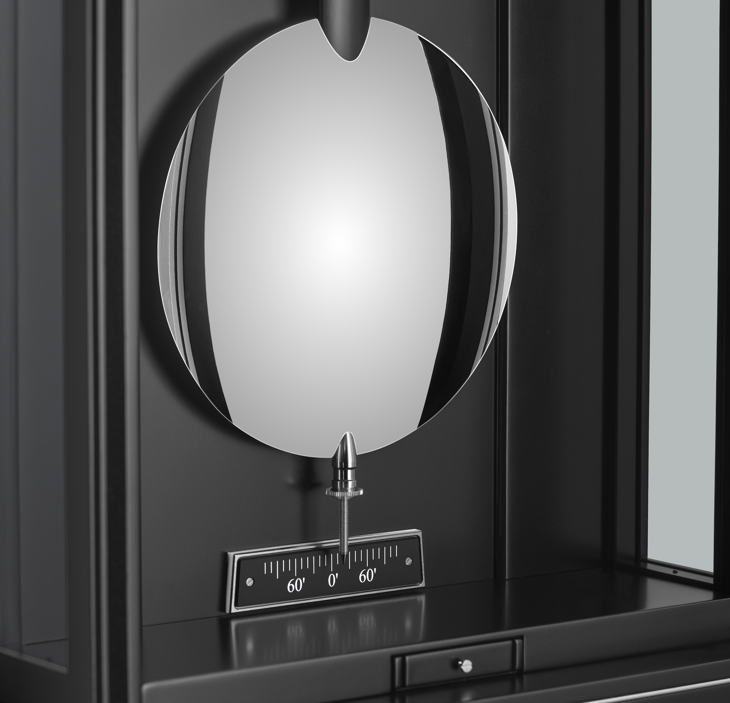 | Dial | Two-part dial, black and natural anodized, hand-painted moon disc, moon phase indicator for the Northern and Southern Hemispheres, date and day display |