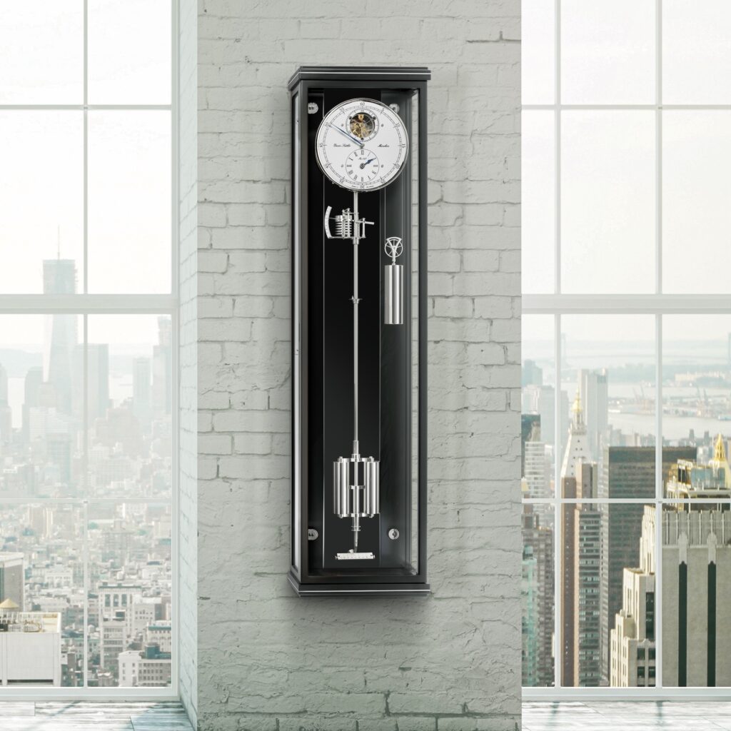 In addition to its pleasant chime, the clock also has a handpainted moon phase display that lends a special appeal to the silver-plated dial. The combination of these two functions brings together visual beauty and acoustic splendour. As is customary with the precision pendulum clocks from Erwin Sattler, the pendulum of the Secunda Sonata is equipped with temperature and air-pressure compensation.