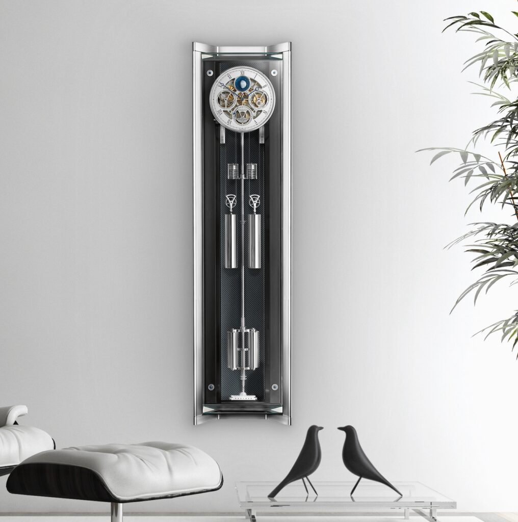 Die Weiterentwicklung der über 600 Mal gefertigten Präzisionsuhr 1935 verschönert Büros, Eingangsbereiche und Wohnräume.