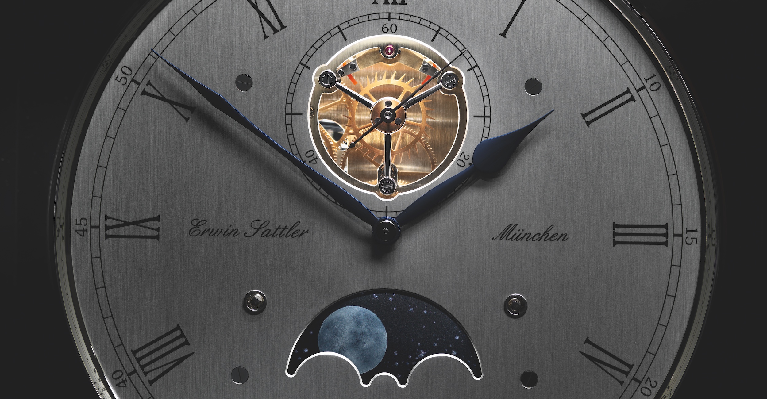 Der stolze Besitzer eines solchen, in Handarbeit gefertigten Zeitmessers wird sich nicht nur am beruhigenden Ticken des Uhrwerks, sondern auch am warmen Klang der Tonfeder zu jeder halben und vollen Stunde erfreuen können. Neben ihrem angenehmen Ton bietet die Uhr auch eine handbemalte Mondscheibe, die dem versilberten Zifferblatt eine spezielle Ästhetik verleiht. In der Kombination dieser beiden Funktionen werden die optische Schönheit und die akustische miteinander vereint.
